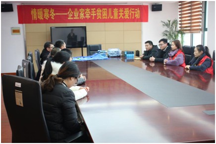 野徐鎮(zhèn)實(shí)驗(yàn)中小學(xué)校長(zhǎng)為野徐鎮(zhèn)政府領(lǐng)導(dǎo)以及泰州青之峰愛(ài)心社介紹留守兒童家庭情況